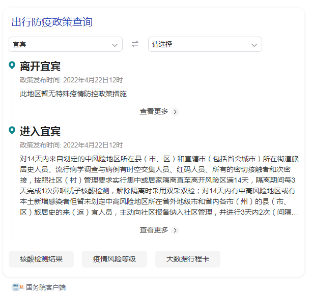 同时关于【国务院客户端】出行防疫政策的相关查询做分享,也请进出宜宾的市民朋友自行做好各项疫情防控的隔离和防护措施。
